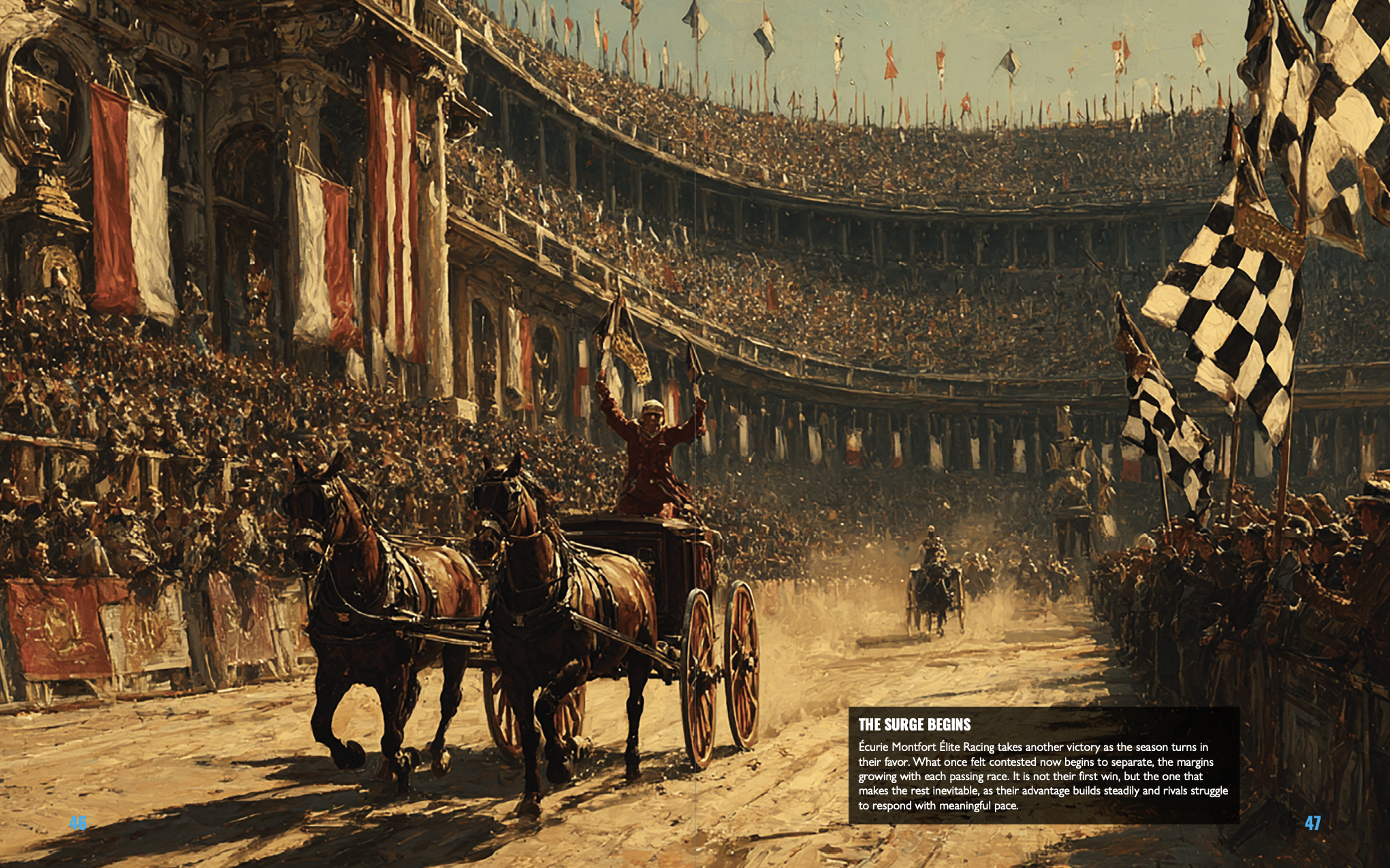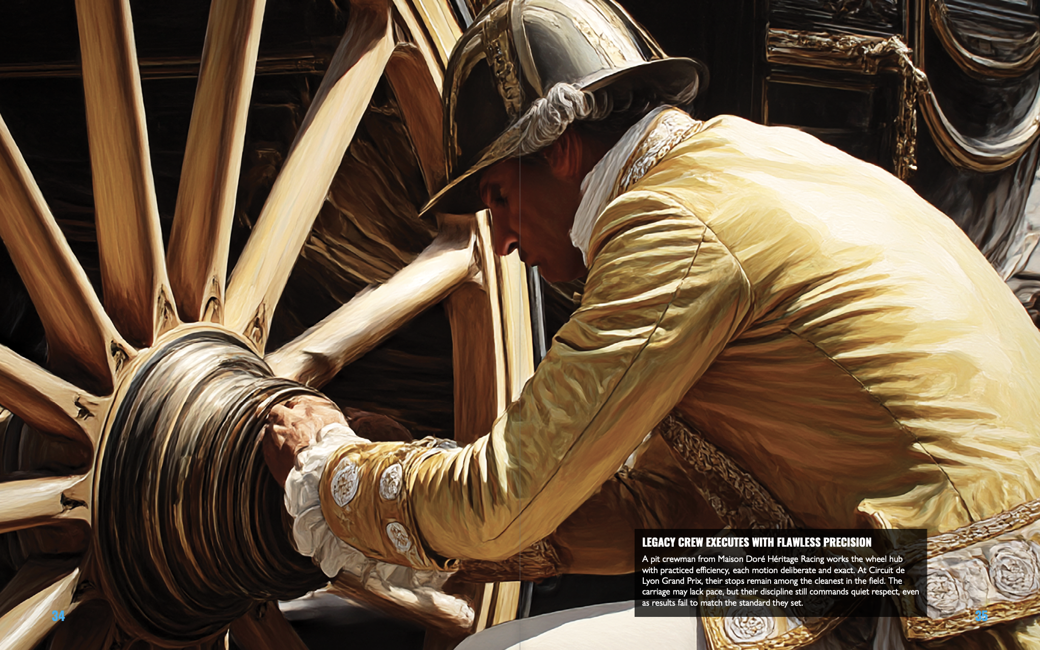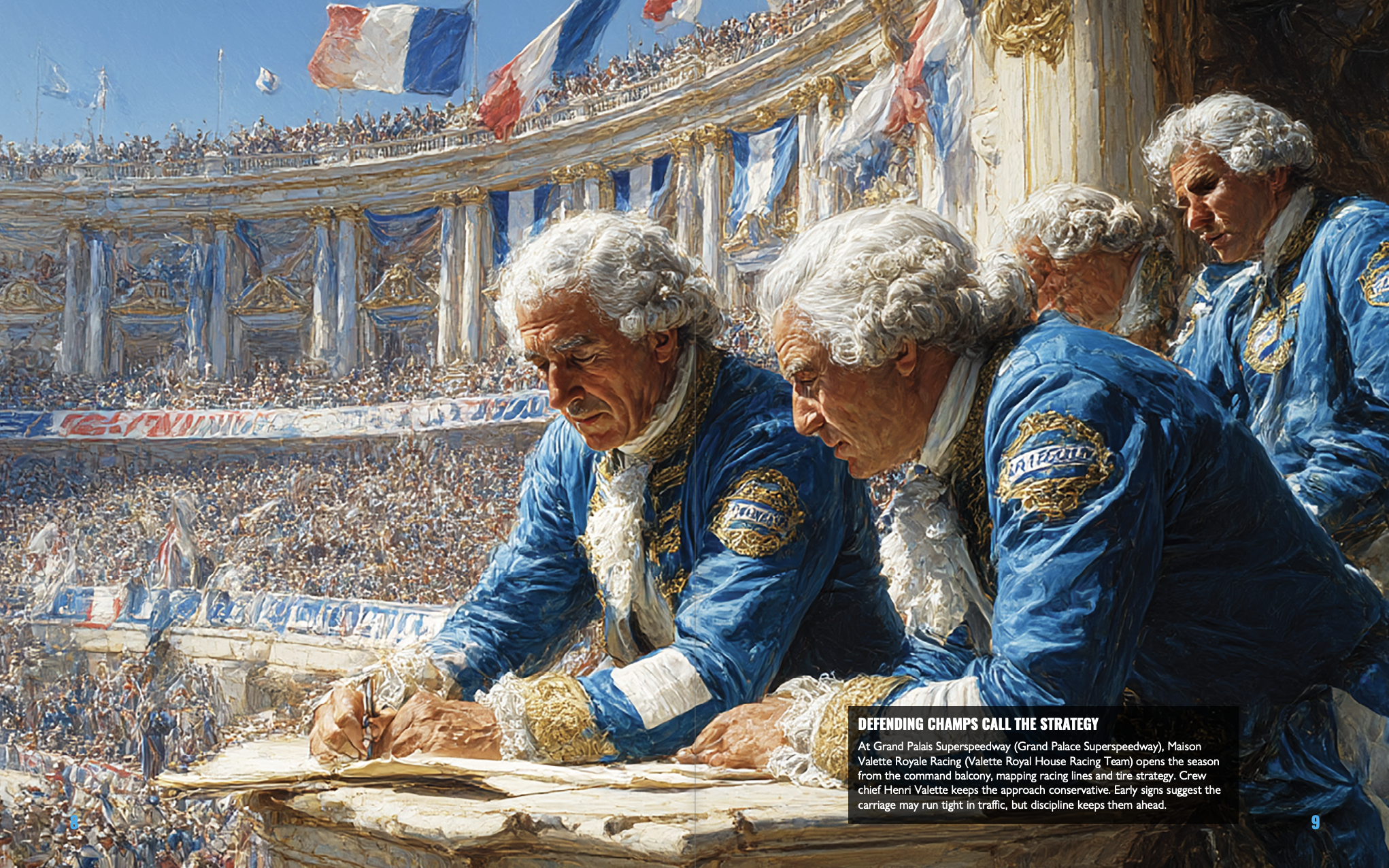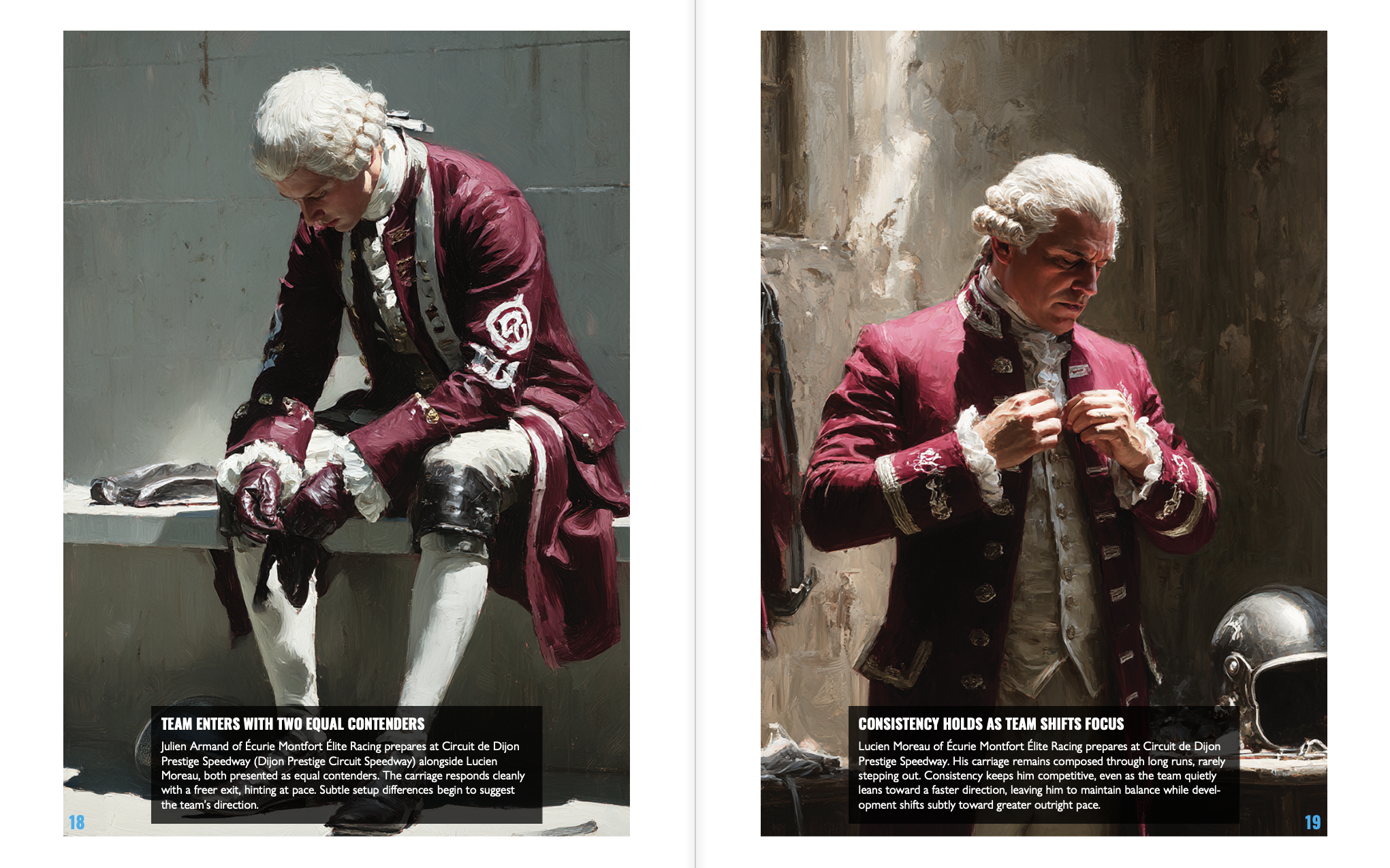 In this alternate 1789, the French aristocracy established a national racing league with teams, standings, and a full championship season, preserved here as a visual archive of a world where court culture and motorsport logic evolved together.