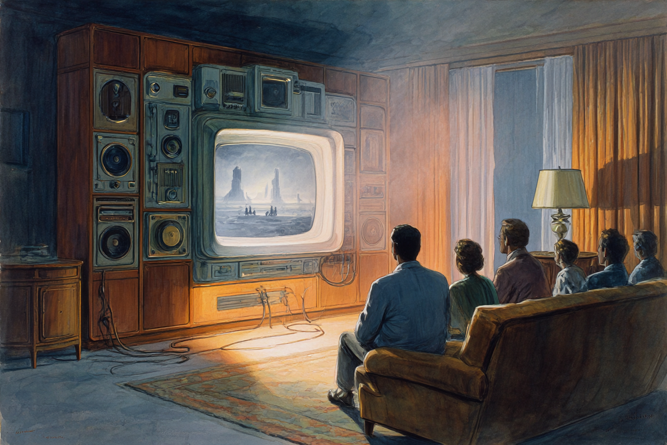 Spanning civilizations from ancient Rome to mid-century America, the imagery follows everyday life as it might have unfolded had certain technologies arrived centuries ahead of schedule. Travel, communication, entertainment, and domestic life are each reimagined through the materials, aesthetics, and cultural contexts of their time.