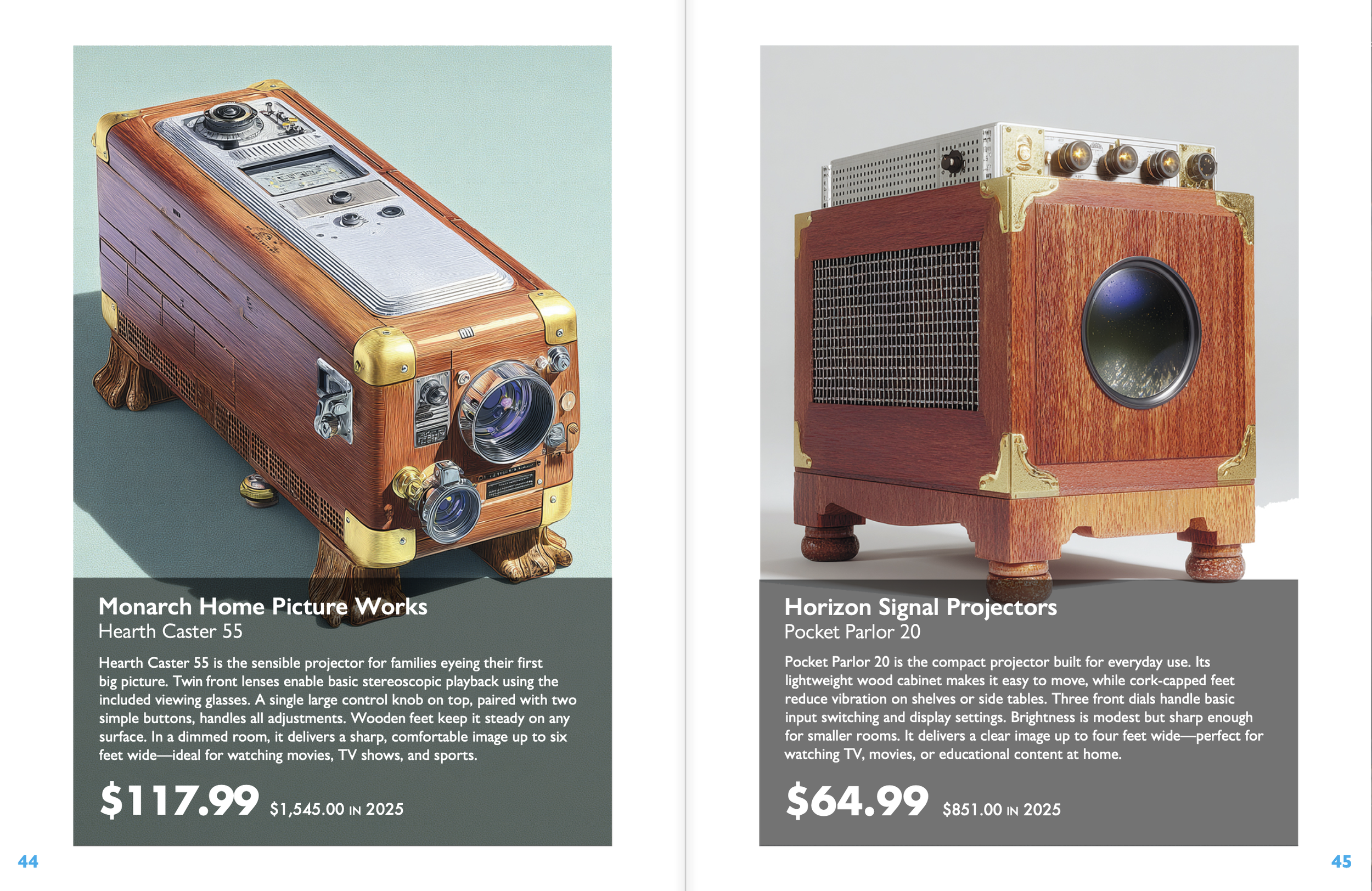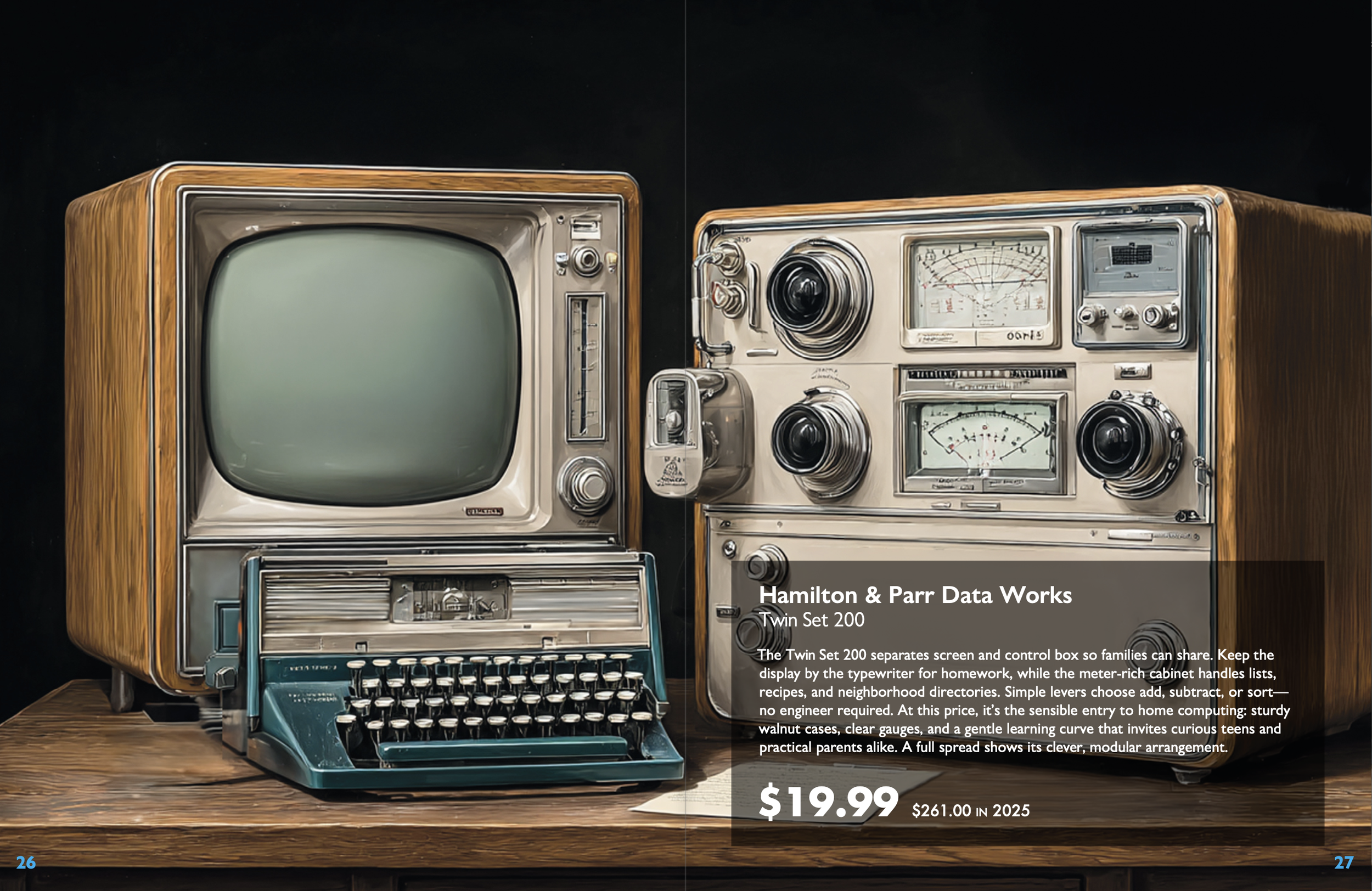 It presents a series of visual scenarios exploring how modern technological behaviors might take shape in earlier eras. Each scene is treated as a practical environment, grounded in the logic of the time rather than speculative futurism.