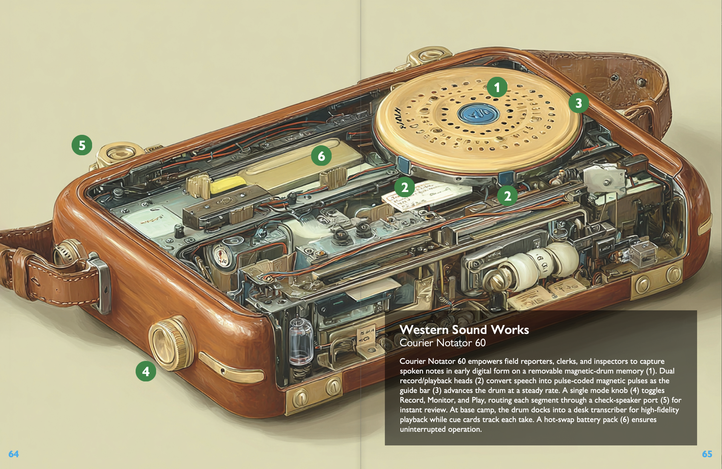 Instead of silicon chips and modern manufacturing, systems are built using the tools available in their time. Mechanical components, early electrical systems, and modular construction take the place of microelectronics. Networks are physical and visible—wires, relays, and switching systems—rather than abstract and invisible.